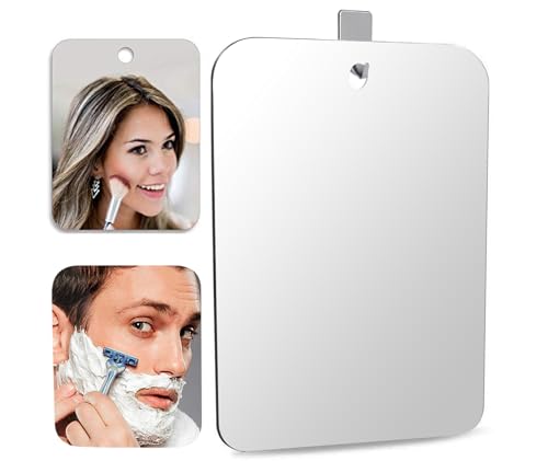 DFLLLO Deluxe Large Shower Mirror Fogless Shaving Mirror (11 inX7.8 in) Anit-Fog Shave Mirror Fog-Free Wall Hanging Mirror Bathroom Mirrors whit 1 Hook