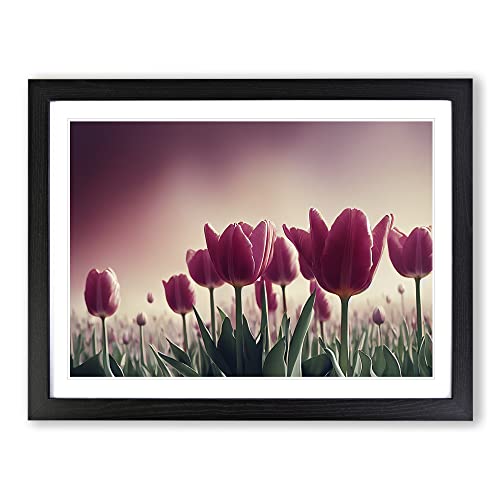 Mind Blowing Tulip Flowers H1022 Framed Print for Living Room Bedroom Home Office Décor, Wall Art Picture Ready to Hang, Black A4 Frame (34 x 25 cm)