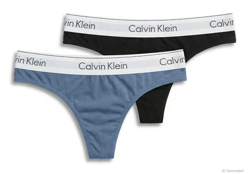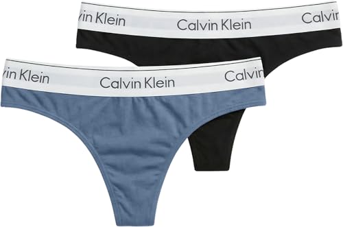 Calvin Klein Women THONG 2PK MULTI (Black/Blue Tulip) XS