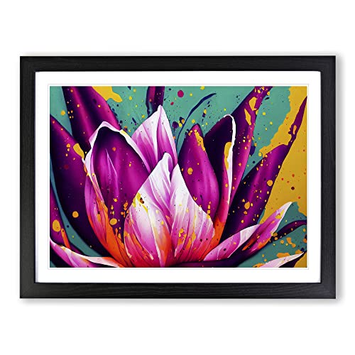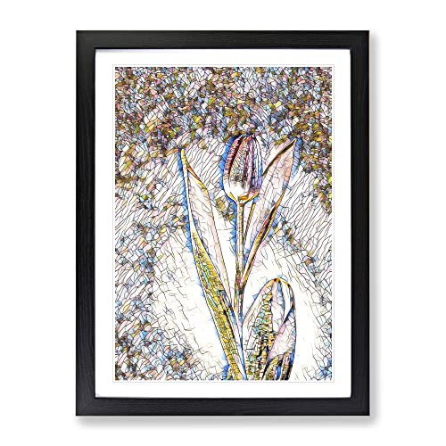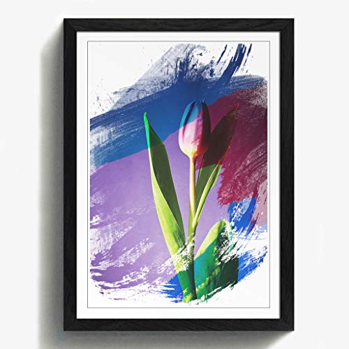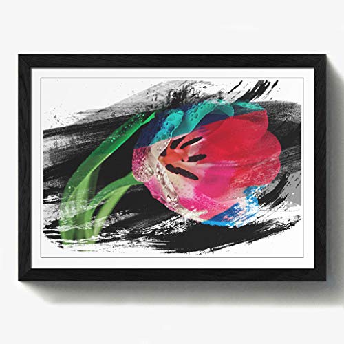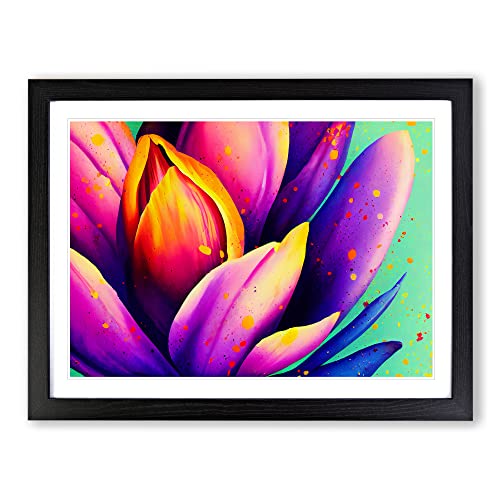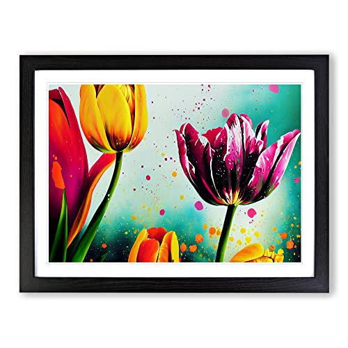 Tulip Flower Splash Vol.2 Abstract H1022 Framed Print for Living Room Bedroom Home Office Décor, Wall Art Picture Ready to Hang, Black A4 Frame (34 x 25 cm)