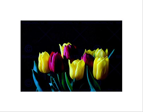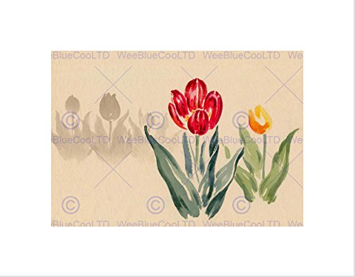 Wee Blue Coo Nature Tulip Yellow Red Black Flower Plant Wall Art Print