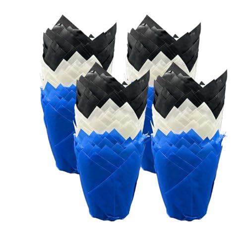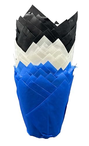 Scrumptious! - 50PC Blue, Black and White Mix Greaseproof Paper Muffin Tulip Cases for Baking - Great for Birthday Party Cakes and Bakes
