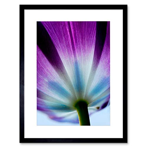 Wee Blue Coo Purple Tulip Petals Macro Artwork Framed Wall Art Print 18X24 Inch