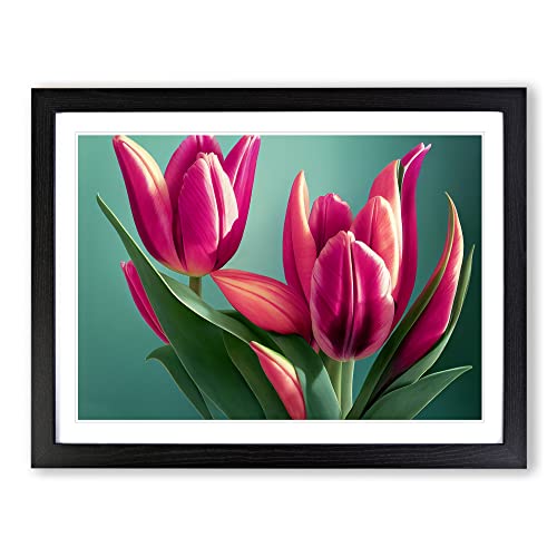 Mind Blowing Tulip Flowers H1022 Framed Print for Living Room Bedroom Home Office Décor, Wall Art Picture Ready to Hang, Black A3 Frame (46 x 34 cm)