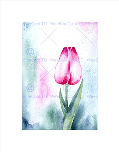 Wee Blue Coo TULIP FLOWER PINK WATERCOLOUR BLACK FRAME FRAMED ART PRINT PICTURE B12X9197