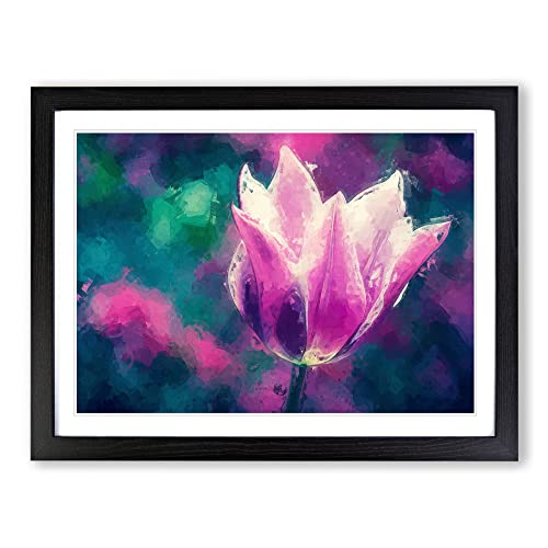 Arty Pie Framed Print Black A2 (24.5x18 Inch) Pink Purple Tulip Flower (4) V3, Wood, Multi-Colour, 60 x 42 x 2 cm