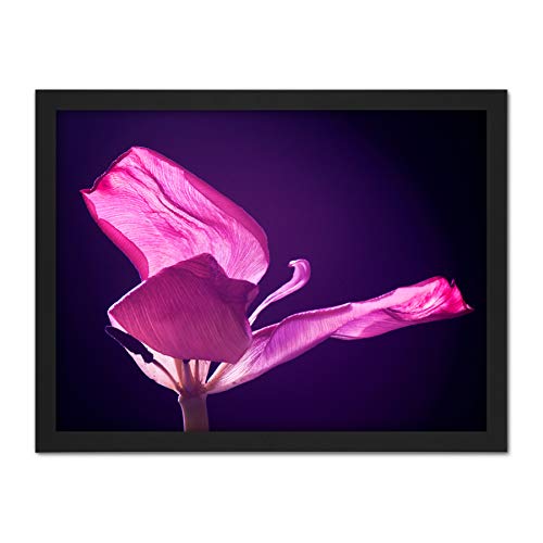 Pink Purple Tulip Flower No.4 Modern Bg Framed Wall Art Print, Ready to Hang Picture for Living Room Bedroom Home Office Décor, Black A4 (34 x 25 cm)