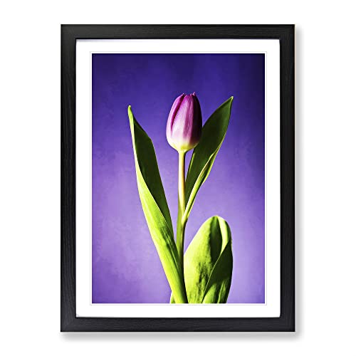 Wee Blue Coo Purple Tulip Flower Bloom Artwork Framed Wall Art Print 18X24 Inch
