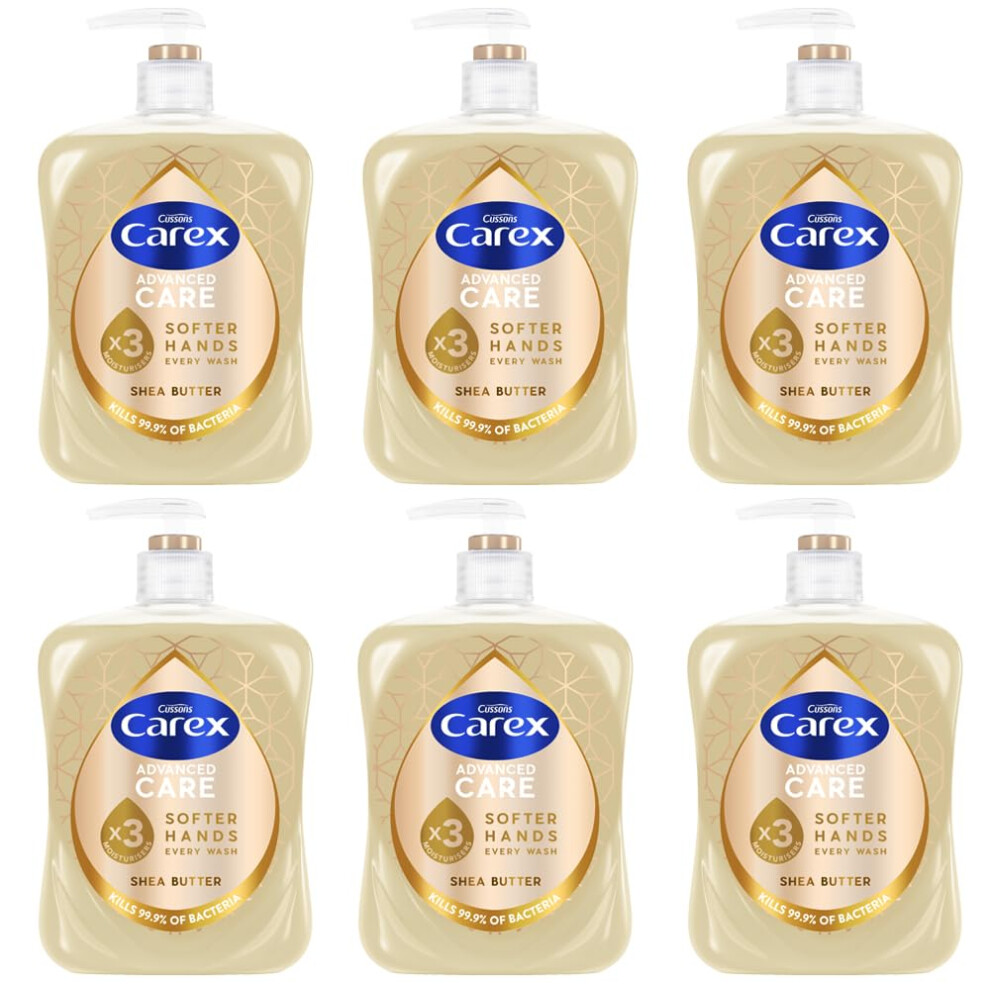 Carex Advanced Care Shea Butter Antibacterial Hand Wash, 3x More Moisturisers, Clean & Protect Hands, Bulk Buy, Pack of 6 x 500ml