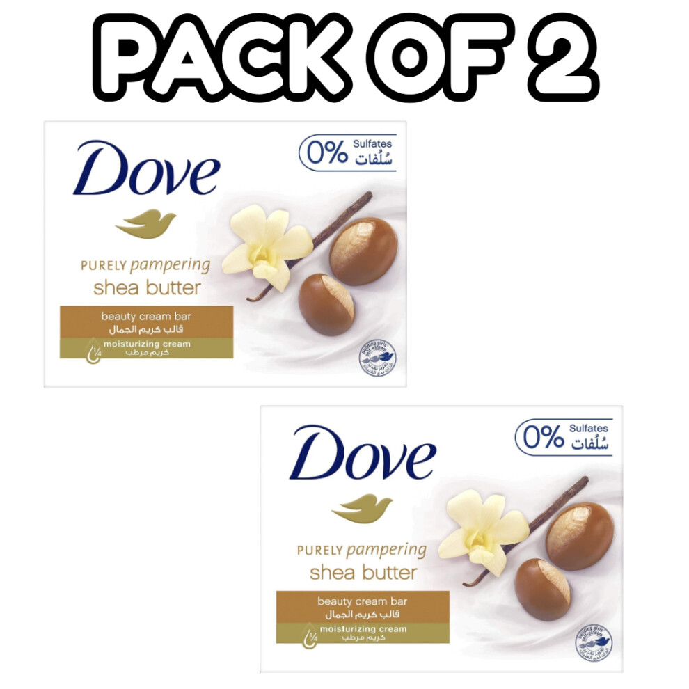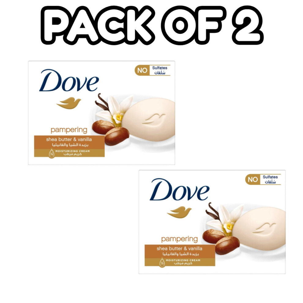 (PACK OF 2) Dove Pampering Shea Butter & Vanilla Beauty Cream Soap Bar 125g |For All Skin Types |¼ Moisturizing Cream |Hand & Body Wash
