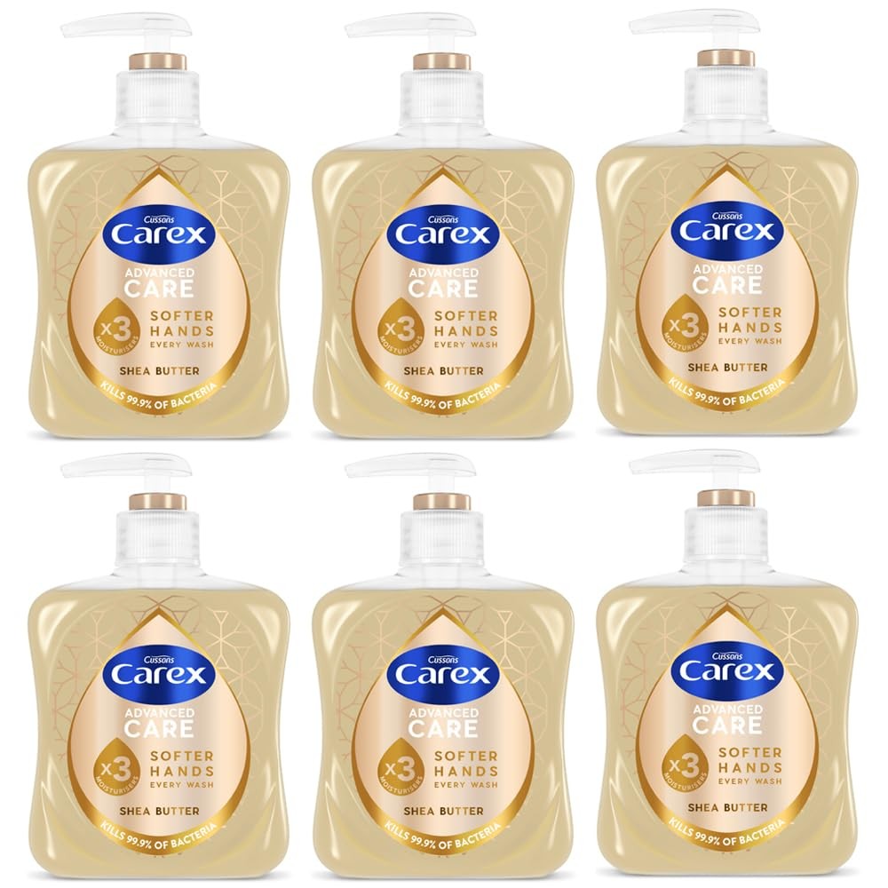 Carex Advanced Care Shea Butter Antibacterial Hand Wash, 3x More Moisturisers, Clean & Protect Hands, Bulk Buy, Pack of 6 x 250ml