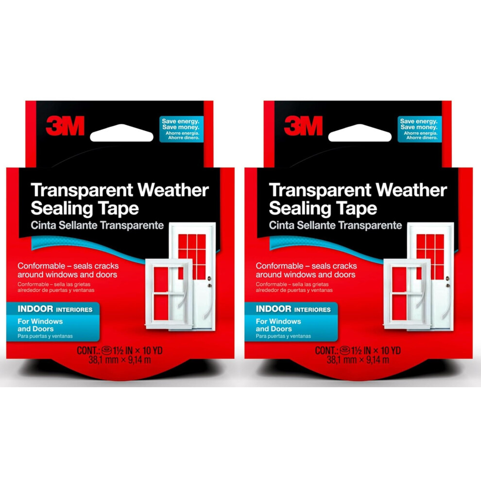 3M Interior Transparent Weather Sealing Tape for Windows and Doors Moisture Resistant Tape 1.5 in. x 10 yd. Roll - Pack of 2