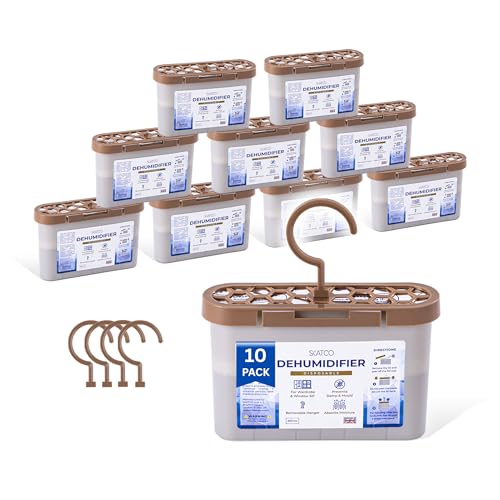 Disposable Dehumidifier Bags - Box - 2-In-1 Condensation Absorbers for Flat Surfaces & Hanging - Compact 500ml Moisture Absorber Dehumidifiers for Home, Kitchen, Wardrobe, Garage, Basement - 10 Pack