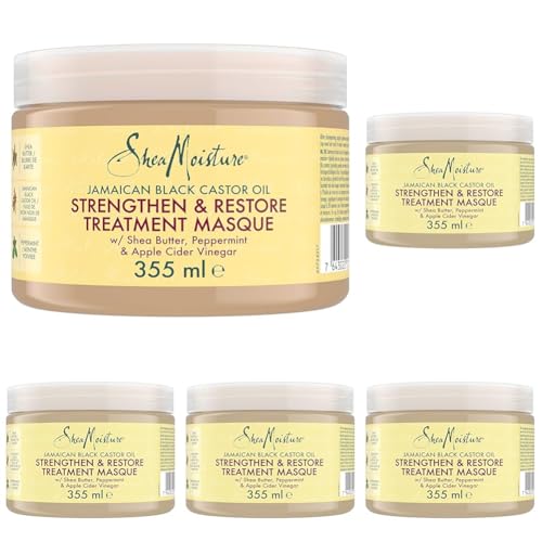 Shea Moisture Jamaican Black Castor Oil Strengthen & Restore Hair Treatment Mask silicone and sulphate-free hair mask for natural, chemically processed or heat-styled hair 355 ml (Pack of 5)