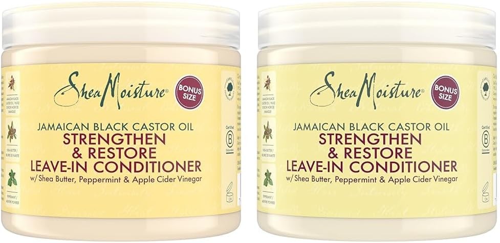 Shea Moisture Jamaican Black Castor Oil Strengthen & Restore Leave-In Conditioner, with Butter, Peppermint Apple Cider Vinegar 431 ml