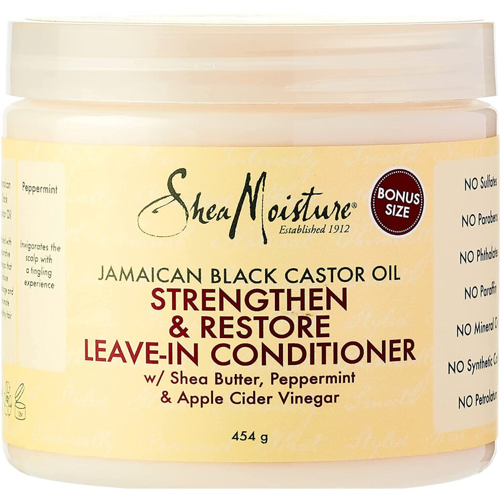 Shea Moisture Jamaican Black Castor Oil Strengthen & Restore Leave-In Conditioner, with Shea Butter, Peppermint & Apple Cider Vinegar 431 ml