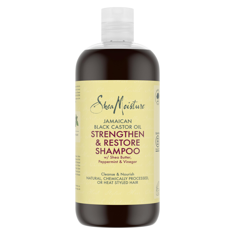 SheaMoisture Jamaican Black Castor Oil Strengthen & Restore Shampoo Shea Butter Peppermint & Apple Cider Vinegar Sulfate Free Chemically Proc