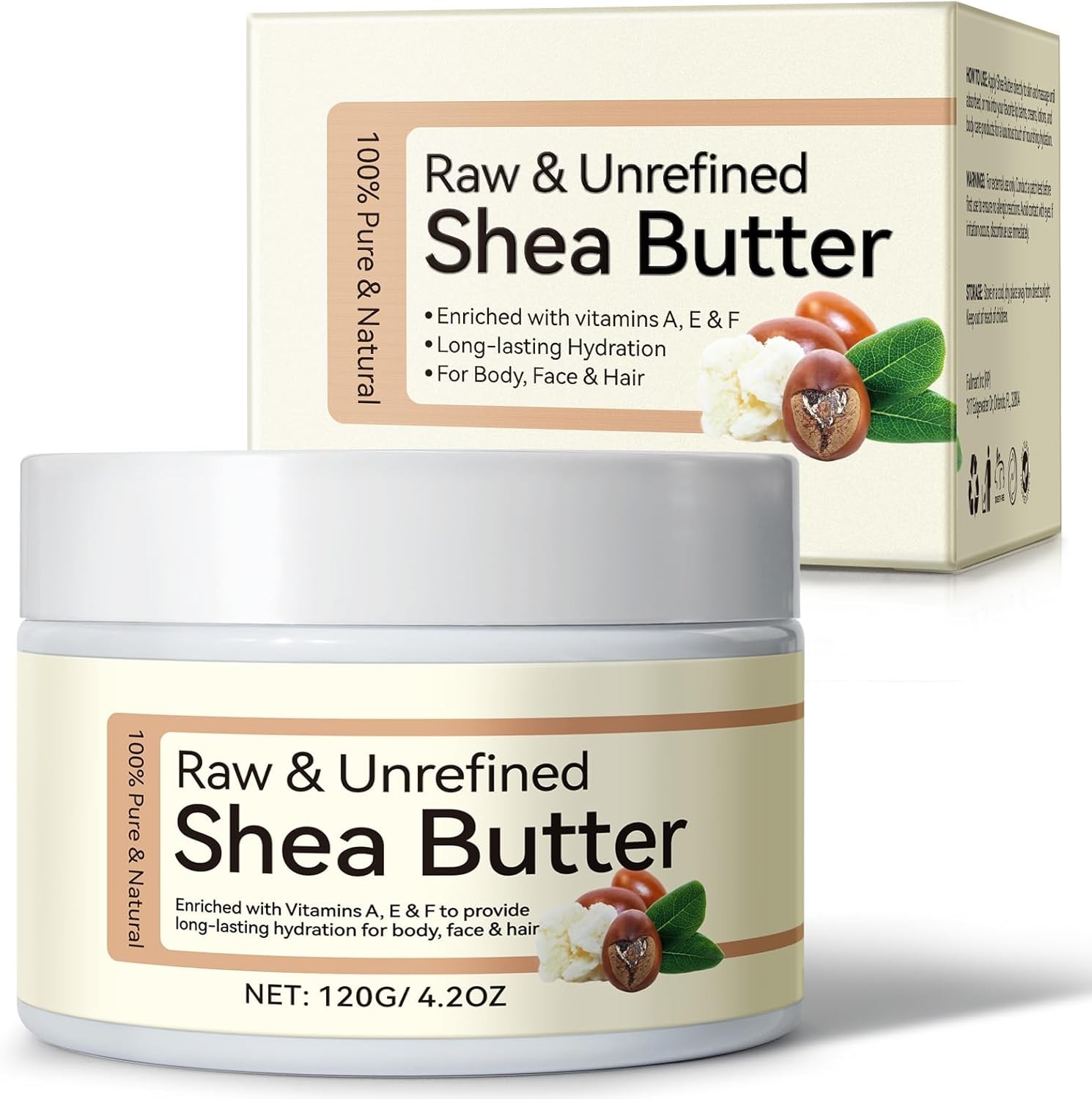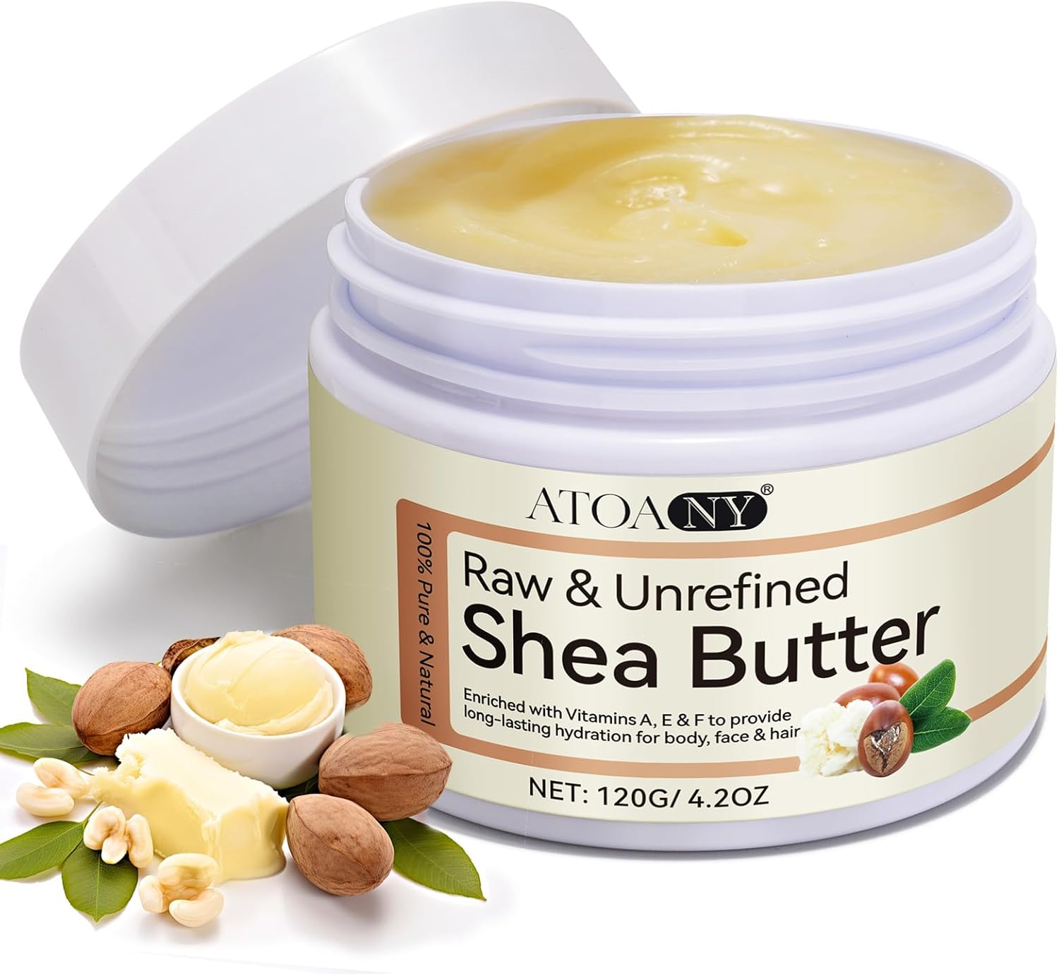 Organic Shea Butter, Raw & Unrefined Shea Butters for Body, Face & Hair, Pure Shea Butter with vitamins A, E & F, Long-Lasting Hydration for Dry Skin, Hair Care, DIY Lip Balm, Natural Moisturize