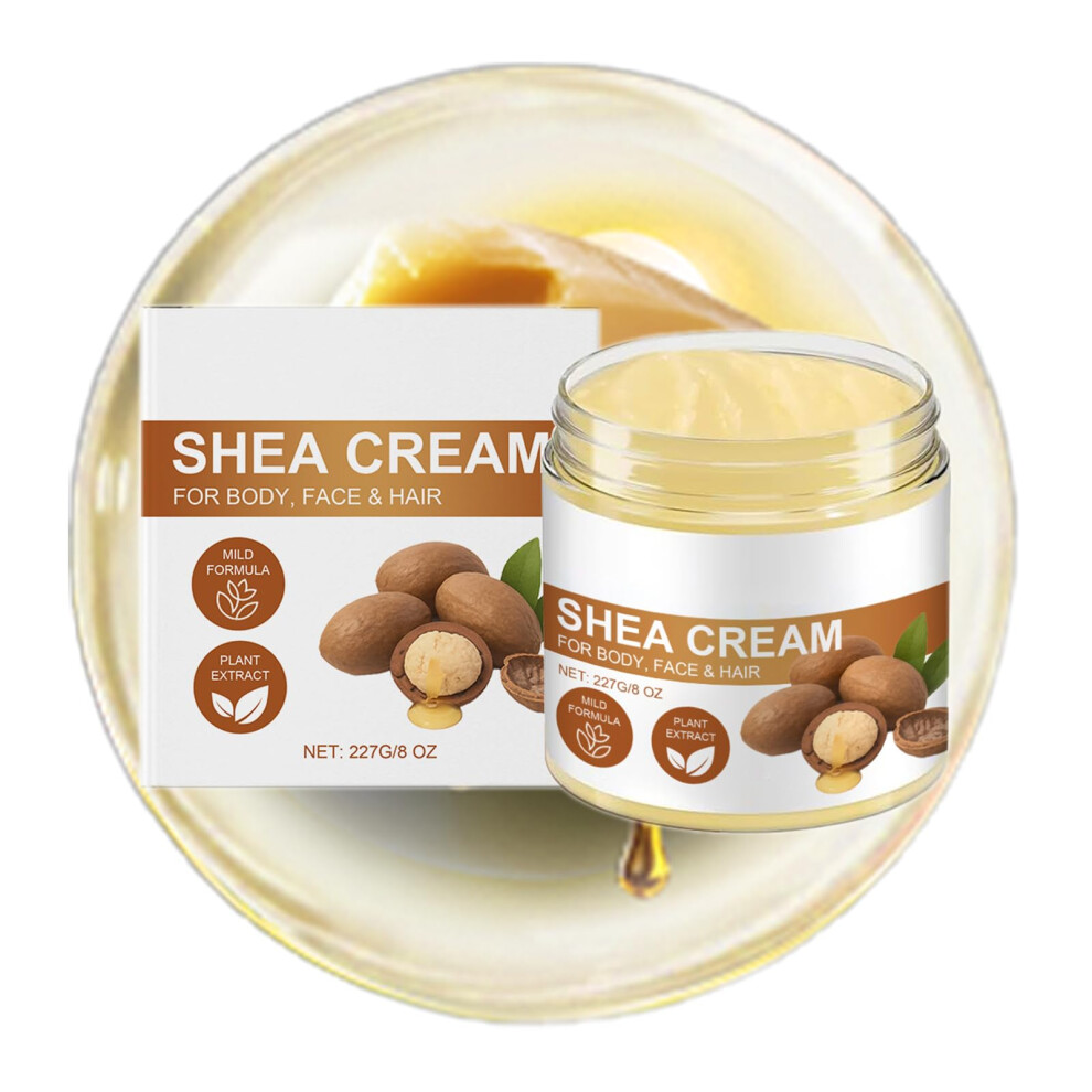 Organic Unrefined Shea Butter Cream for Hair and Skin, Deep Hydration Moisturizer, 8oz