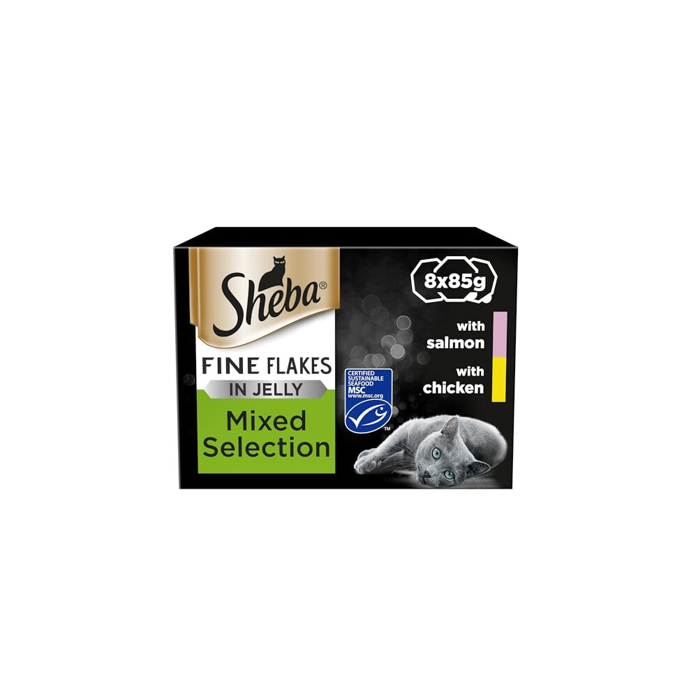 Sheba Fine Flakes Cat Food Tray Collection with Salmon & Chicken in Jelly 8x85g