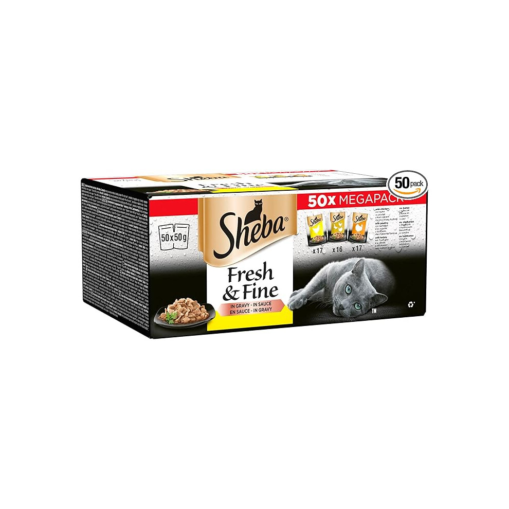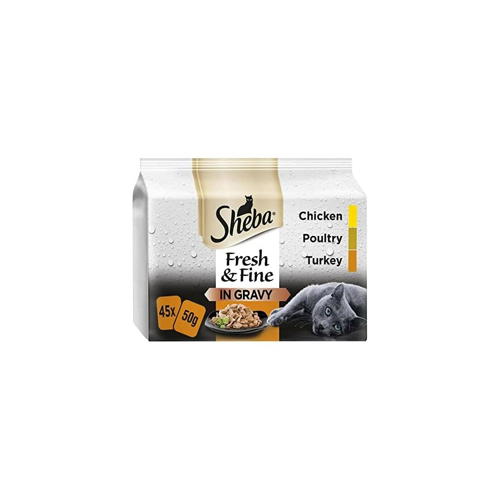 Sheba Cat Wet Food - Fresh and Fine - Cat Pouches Meaty Pieces in Gravy - 15 x 50 g (Pack OF 3)
