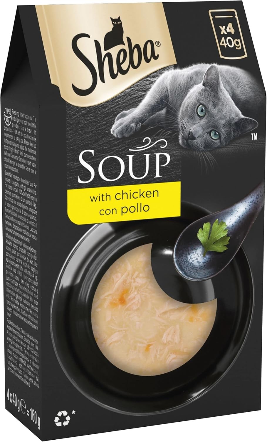 Sheba Classics Cat Food Wet - SOUP Cat Pouches with Chicken Fillets, 4 x 40 g