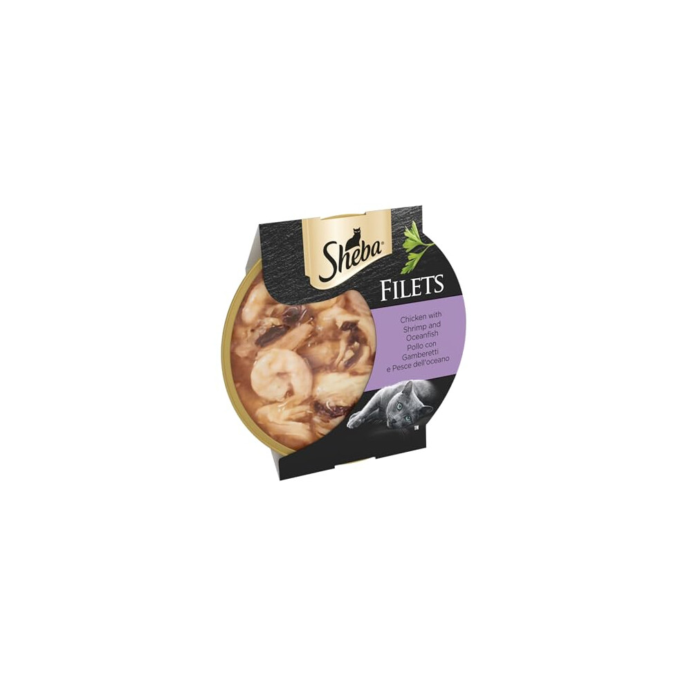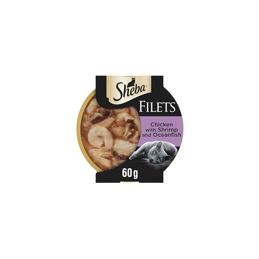 Sheba Fillets Cat Food Tray with Chicken, Shrimp and Ocean Fish in Gravy 2x16x60g