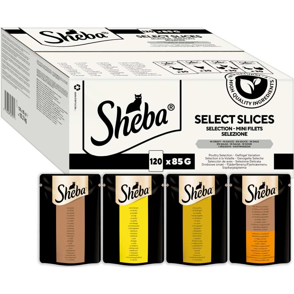 Sheba Select Slices Cat Food Pouch for Adult Cats with Duck, Turkey, Chicken and Poultry in Gravy 120x85g