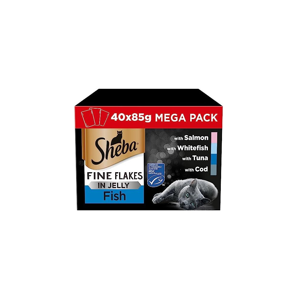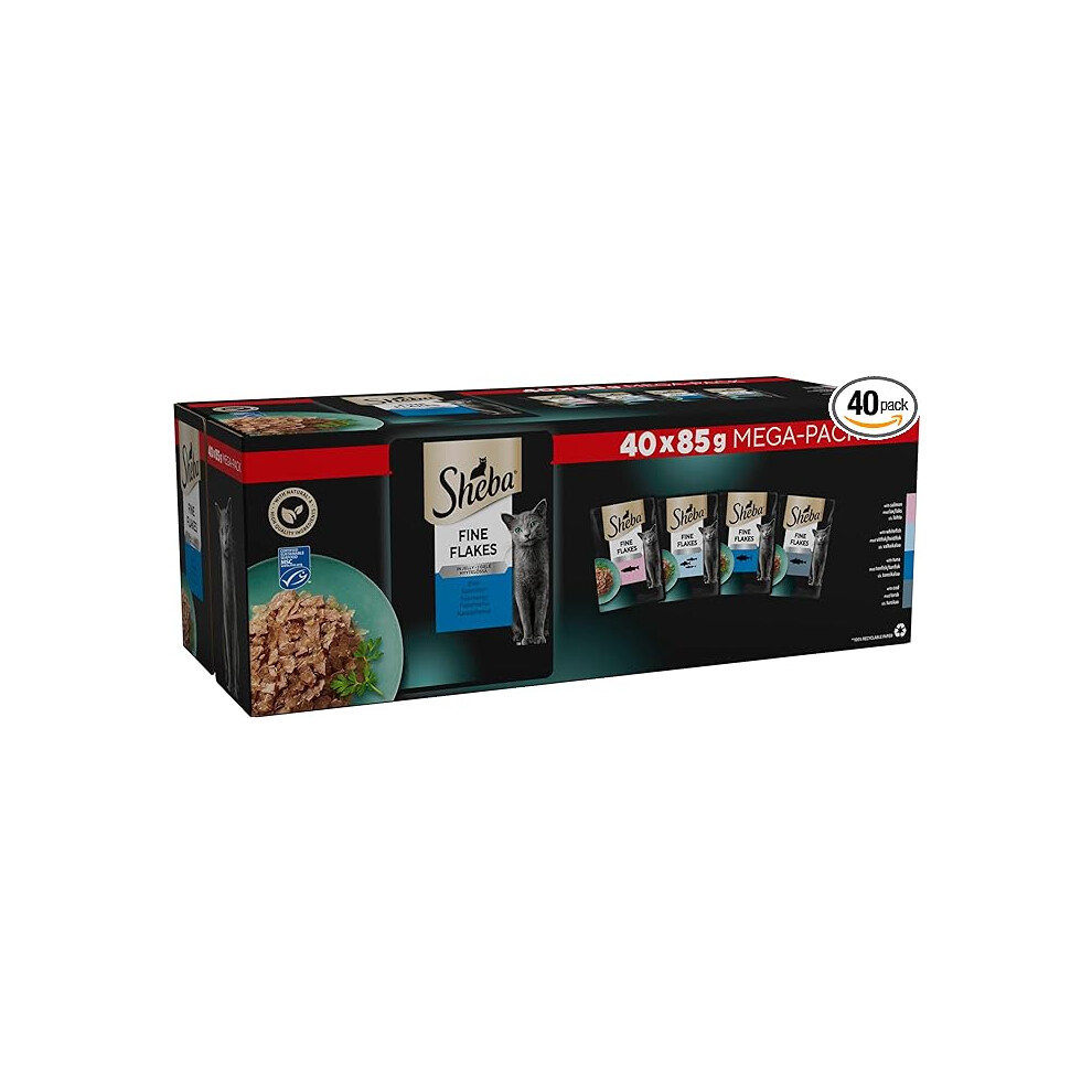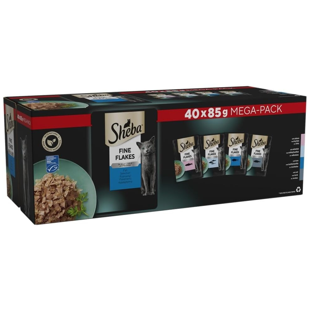 Sheba Fine Flakes in Jelly ? Fish Collection ? Wet Cat Food Pouches for Adult Cats ? (40 x 85 g)