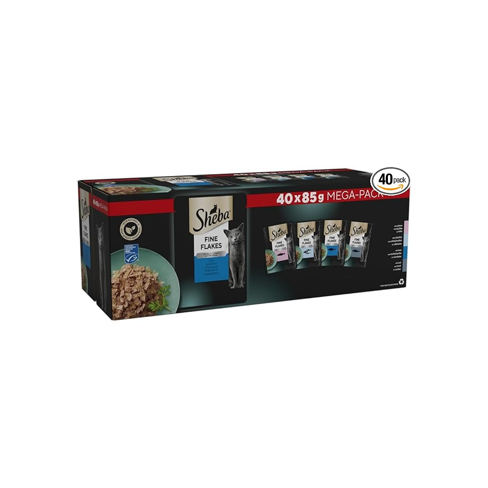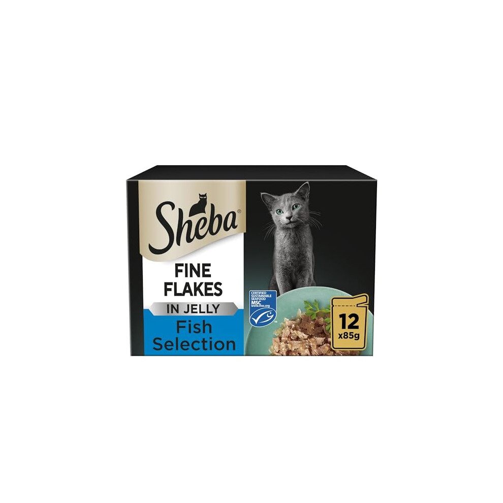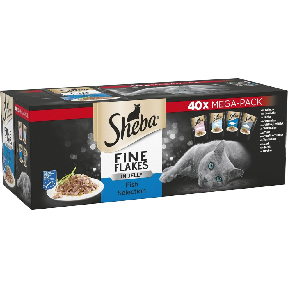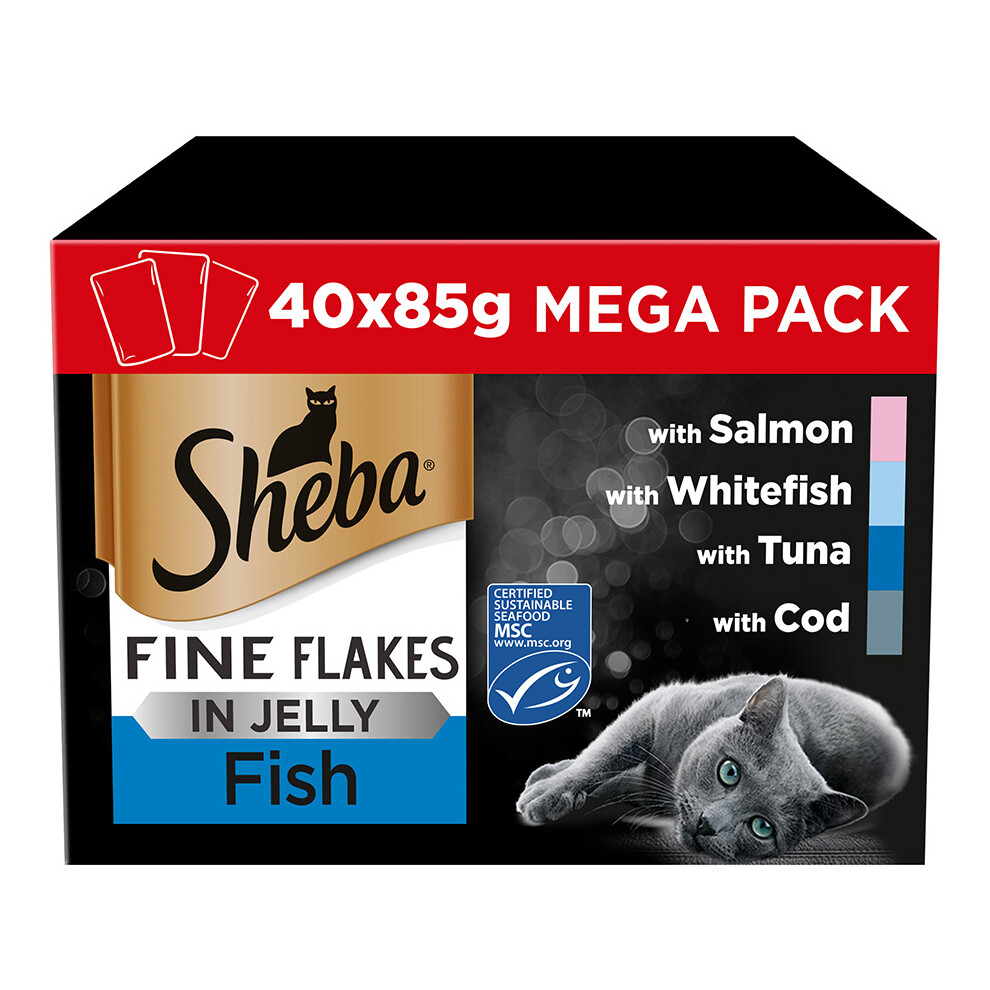 Sheba Fine Flakes in Jelly ? Fish Collection ? Wet Cat Food Pouches for Adult Cats ? (40 x 85 g)