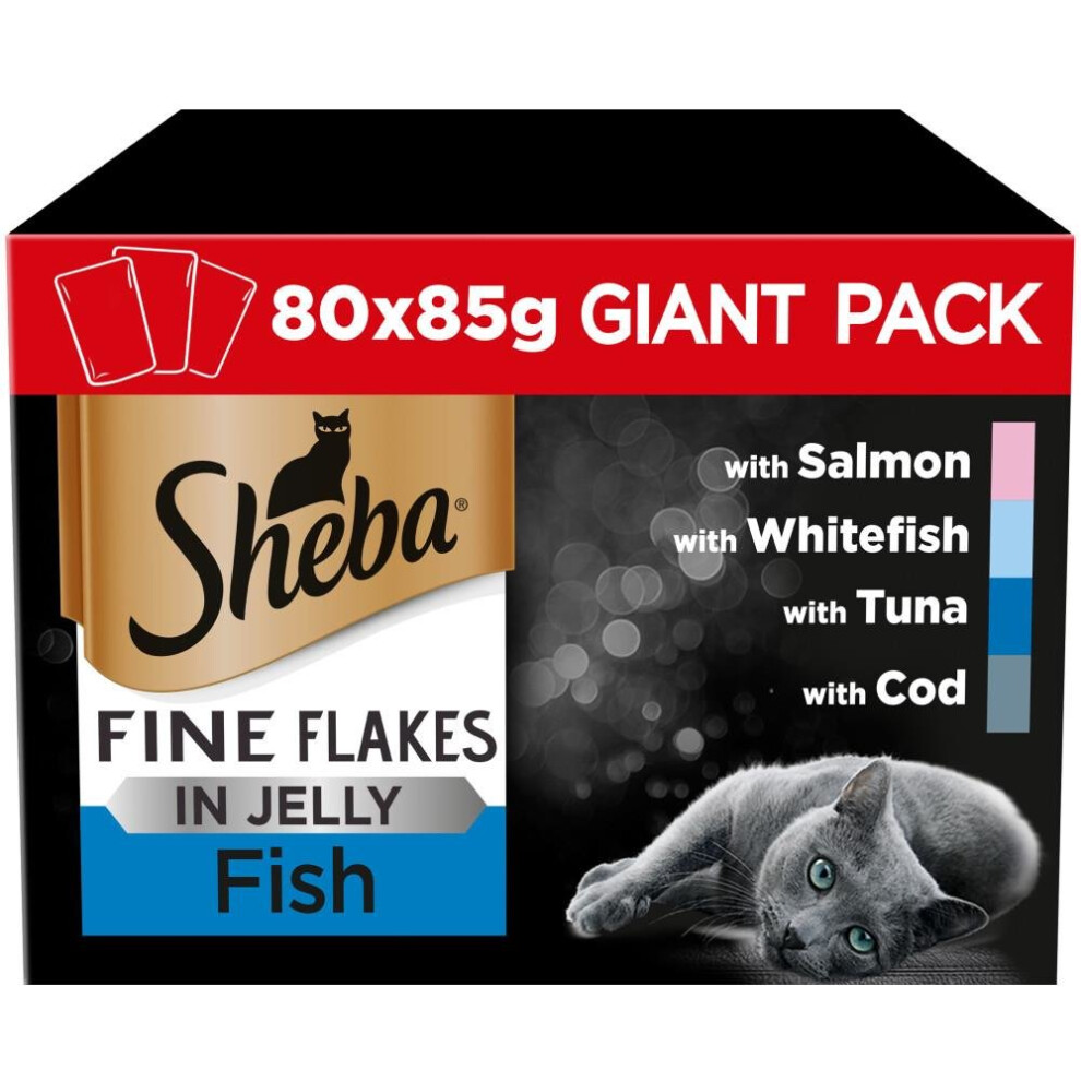 SHEBA Fine Flakes Cat Food Pouch Fish in Jelly Giant Pack 80 x 85g