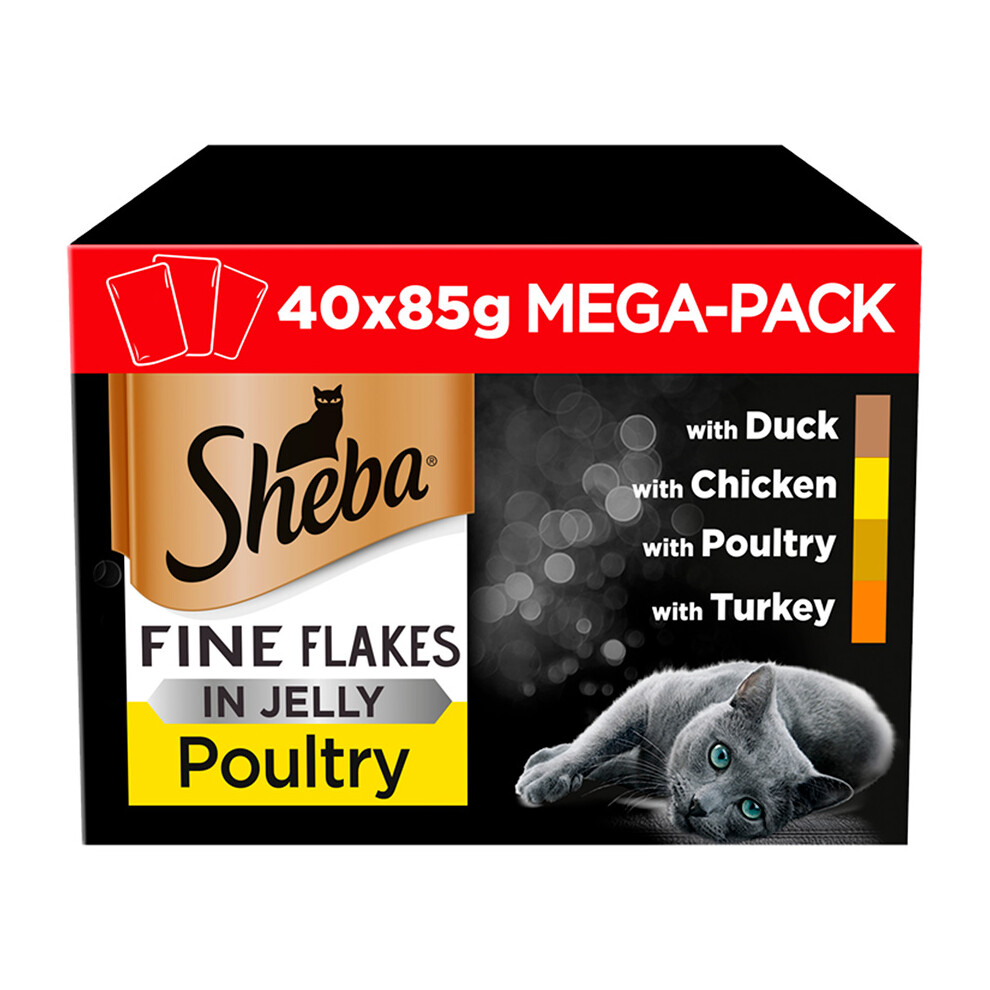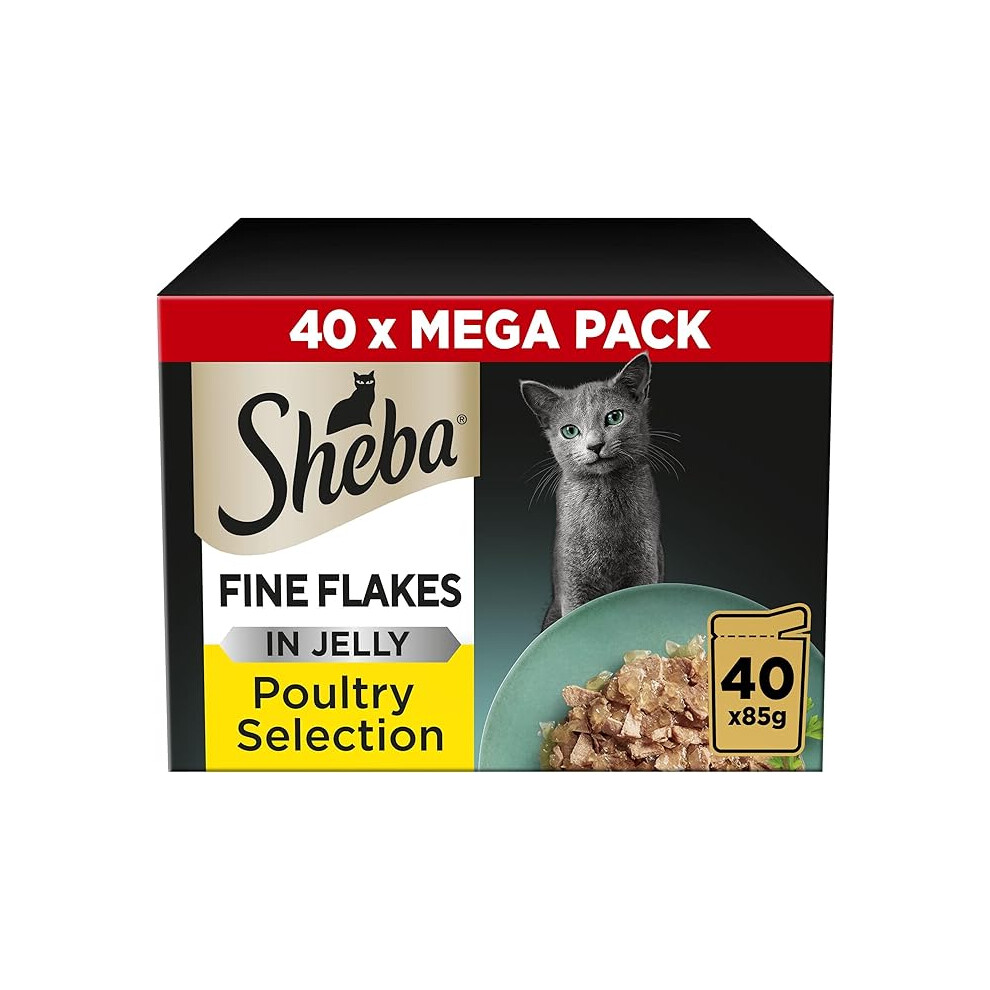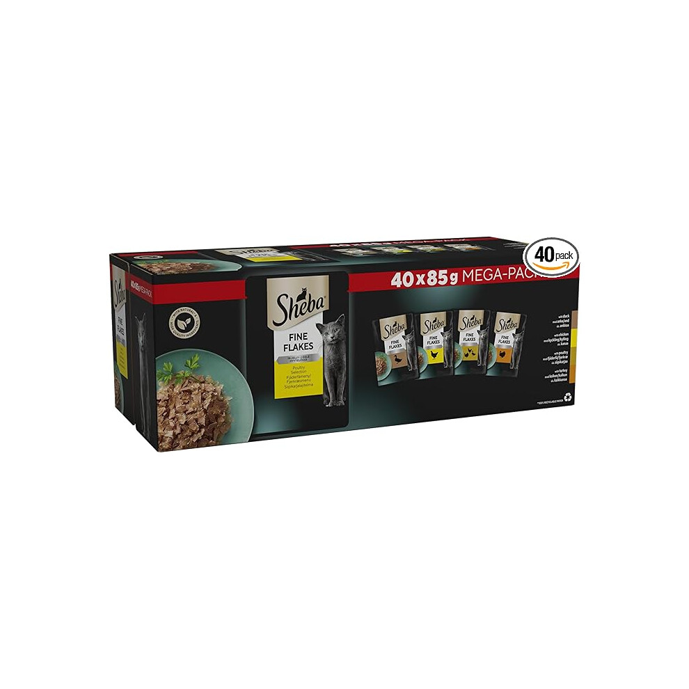 Sheba Fine Flakes Poultry Collection in Jelly 40 Pouches, Adult Wet Cat Food, Megapack , 85 g (Pack of 40)