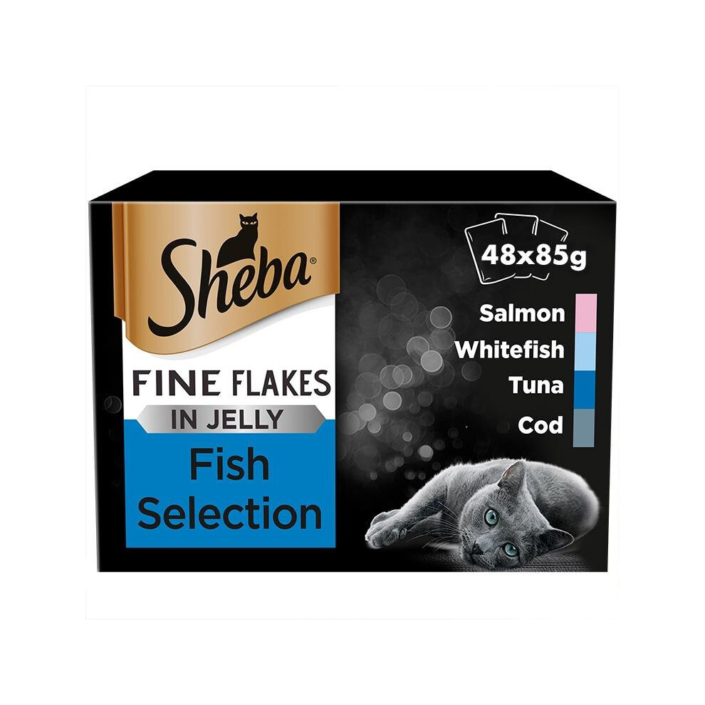 Sheba Pouches Fine Flakes 48 x 85g - Fish Collection in Jelly