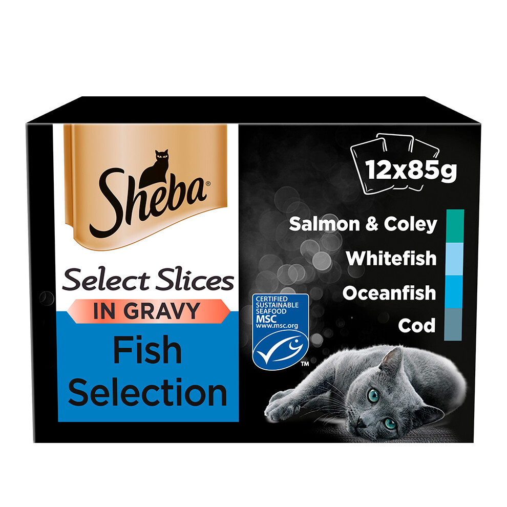 SHEBA Fine Flakes Cat Pouches Fish Collection in Jelly 12x85g (Pack of 4)