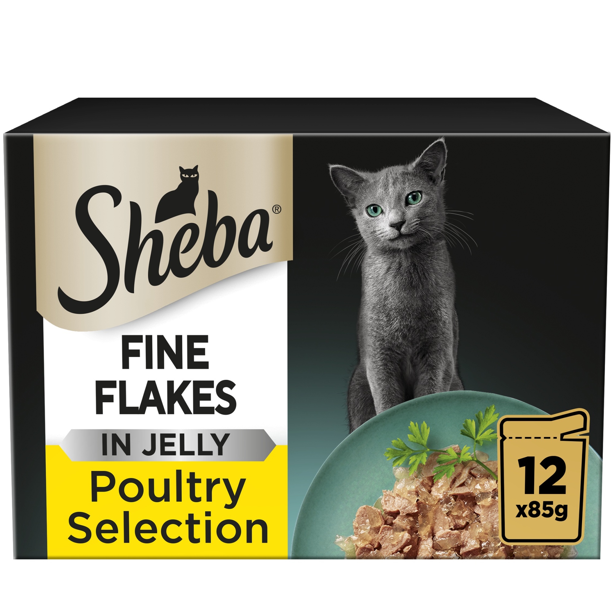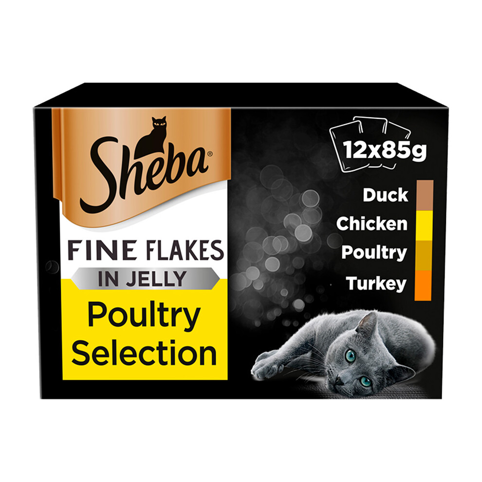 SHEBA Fine Flakes Cat Pouches Poultry Collection in Jelly 12x85g (Pack of 4)