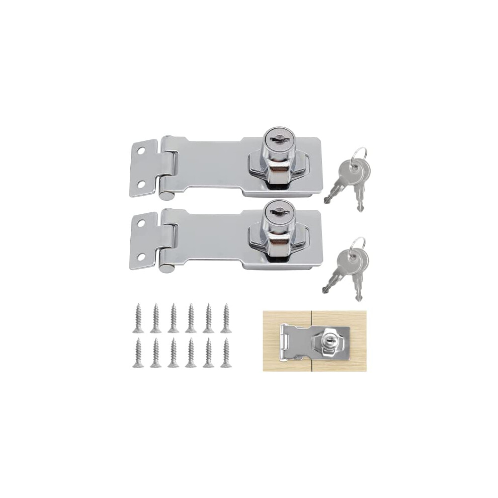 2 Packs Door Lock Hasps, Keyed Hasp Locks Door Lock Hasp and Staple with Padlock Shed Locks with 2 Keys Safety Door Clasp Twist Knob Keyed Locking