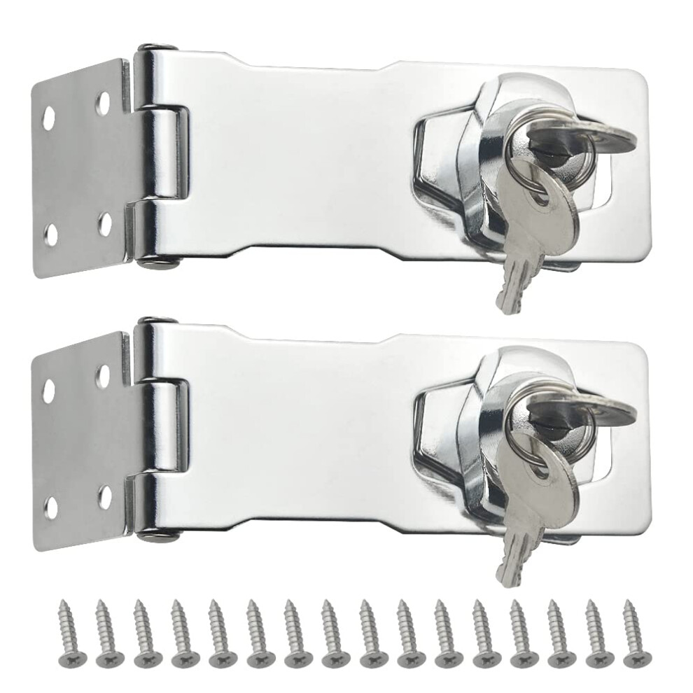 2PCS 4" Locking Hasp with Keys Shed Locks Heavy Duty Hasp Locks Latches for Door Cabinet Drawer (Keyed Alike)