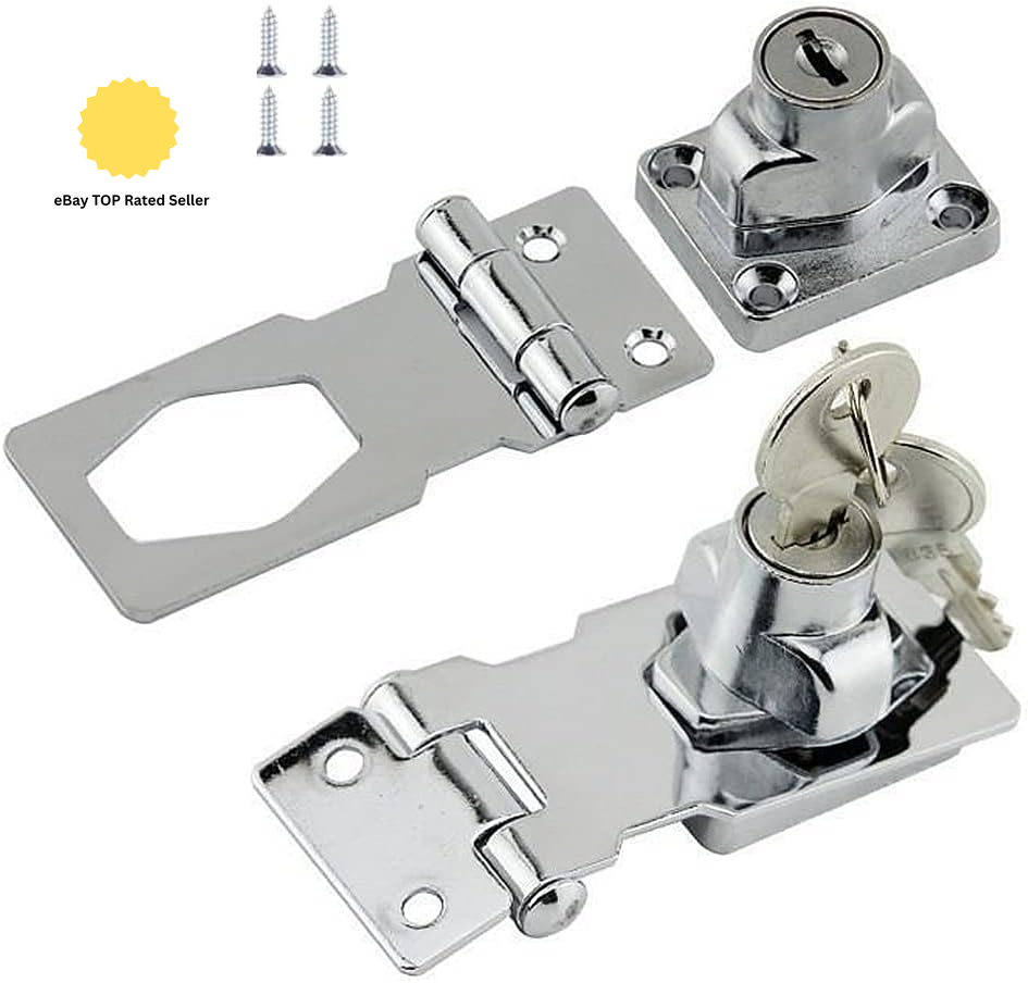 Keyed Hasp Locks Twist Knob Keyed Locking Hasp Padlock Set for Cabinets Security Door Garage Shed Van Lock for W/2 Keys