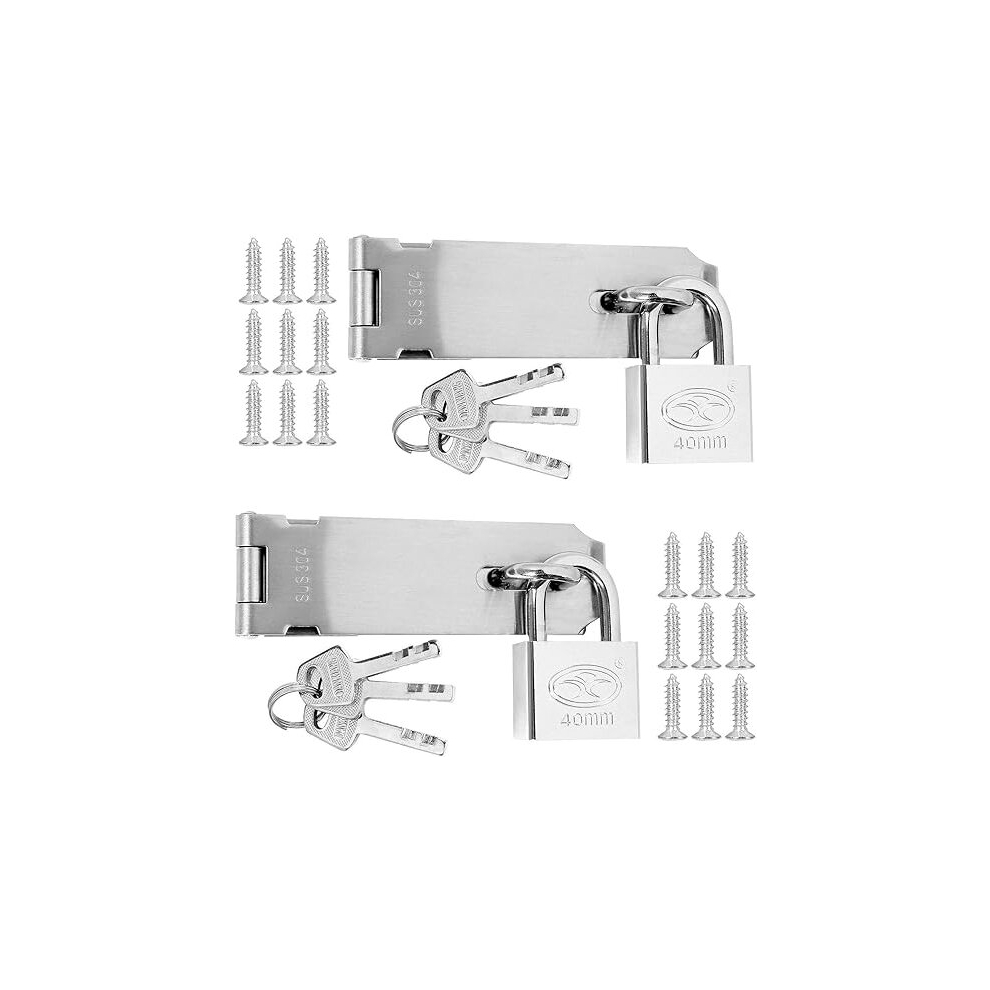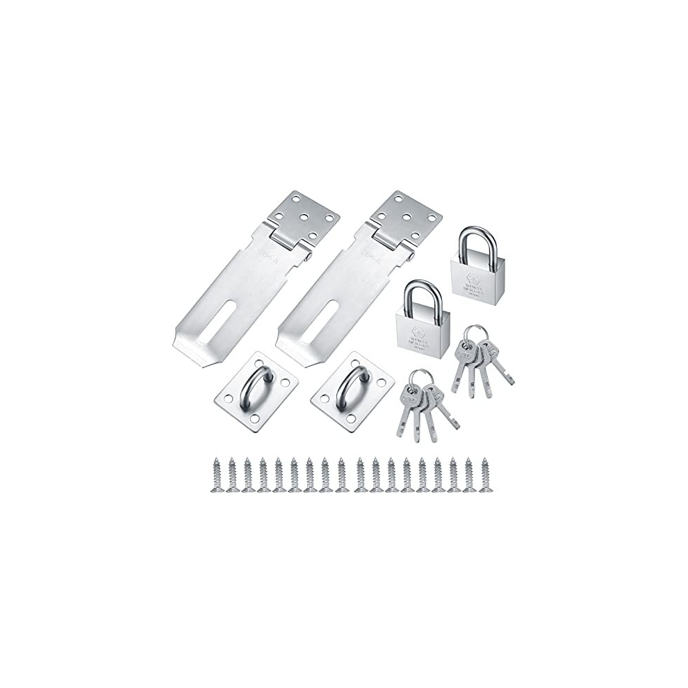 2 Pcs Stainless Steel Padlock Hasp, Door Latch Hasps with Padlocks Keys and Screws, Shed Gate Door Clasps Locks Bolts Hasps and Staples for Wooden