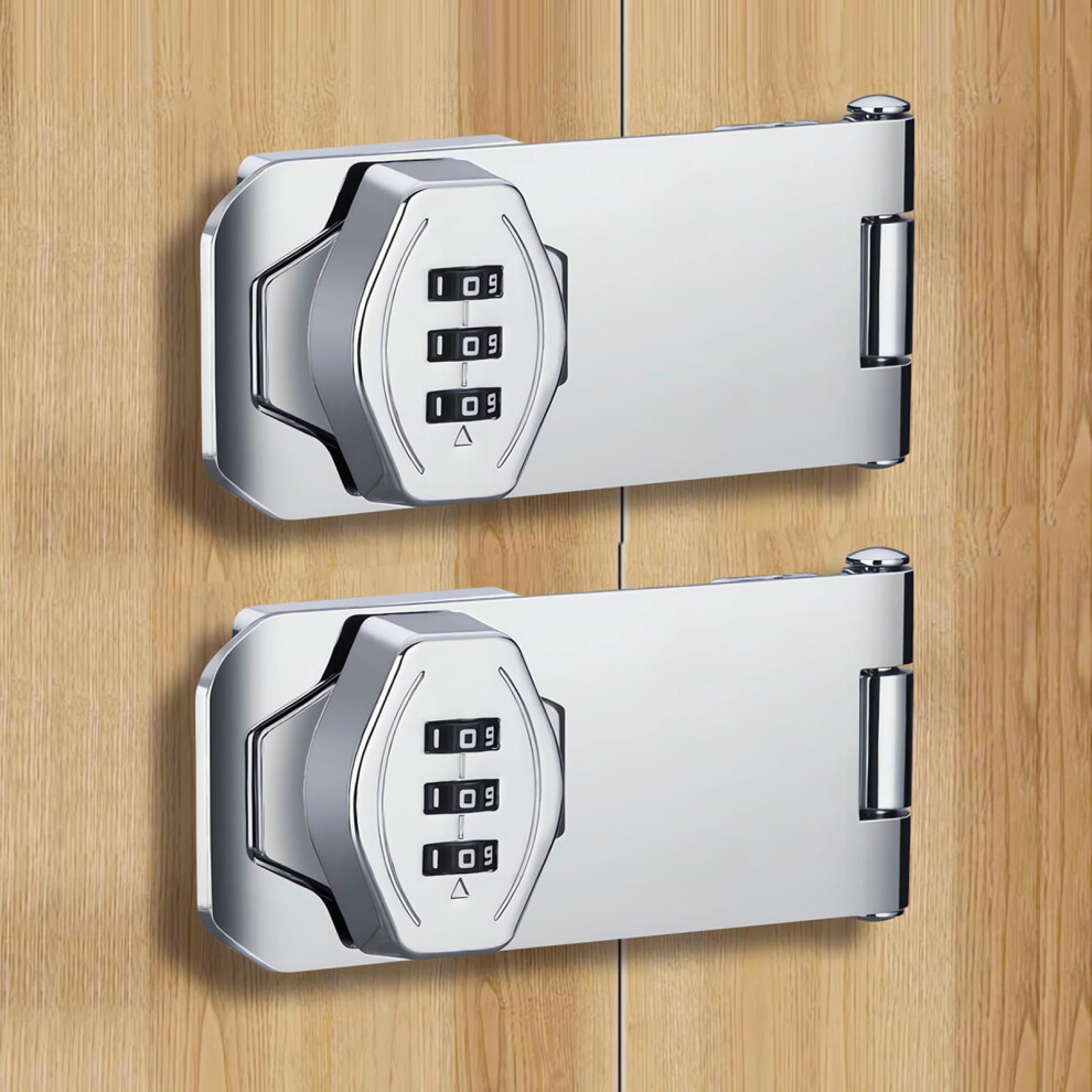 Keyless Cabinet Locks 2 Pack - 3-Digit Combination Bifold Door Lock for Double Doors, Silver Slide Door Locks for Garage and Shed