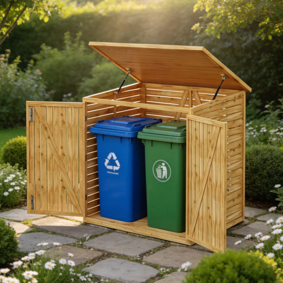 Garden Sanctuary 6.5x3ft Fir Wood Trash Bin Shed