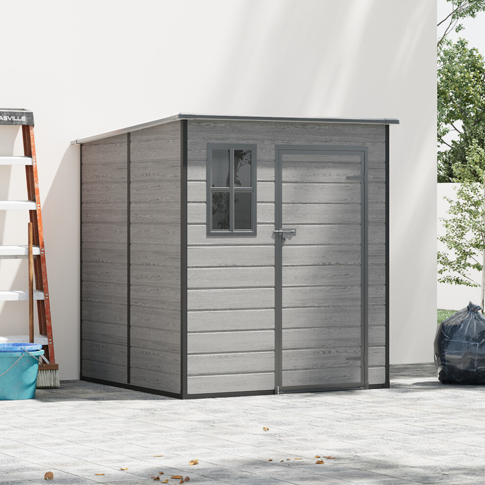 Garden Sanctuary 6Ã6ft Wood Grain Plastic Tool Shed w/ 1 Window, Dark Grey