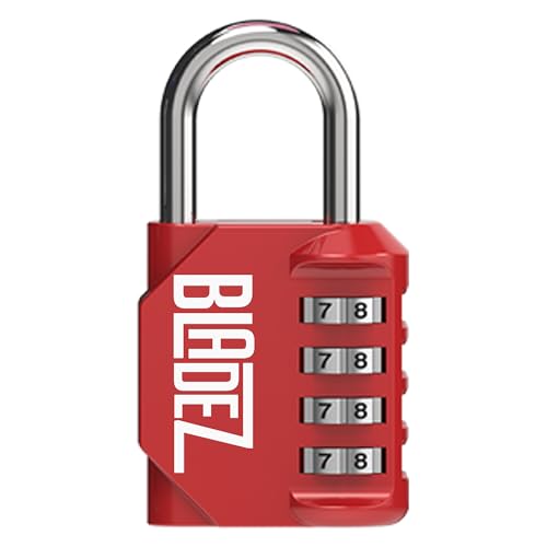 Bladez Combination Padlock with Code, Heavy Duty 4 Digit Pad Locks with Code, Weatherproof & Rust Resistant Locker Padlocks for Gym, School, Shed, Toolbox, Storage & Gate Pack of 1 Red