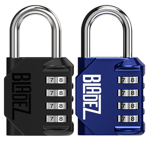 Bladez Combination Padlock with Code, Heavy Duty 4 Digit Pad Locks with Code, Weatherproof & Rust Resistant Locker Padlocks for Gym, School, Shed, Toolbox, Storage & Gate Pack of 2 Black & Blue