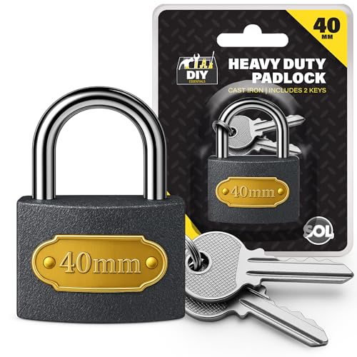 SOL 2pk Heavy Duty Padlocks with Keys – 40mm Outdoor Security Locks with Hardened Steel Shackles – Weather-Resistant Design – Ideal for Shed, Fence, Gate, Toolbox, Storage or Garage Use