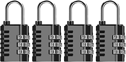 4 Pieces Luggage Locks Combination Padlocks 3 Digit Combination Padlock Codes with Alloy Body for Gym Lockers Travel Bag Suit Case Fence gate Shed Garage Bike Locks (4 pcs)