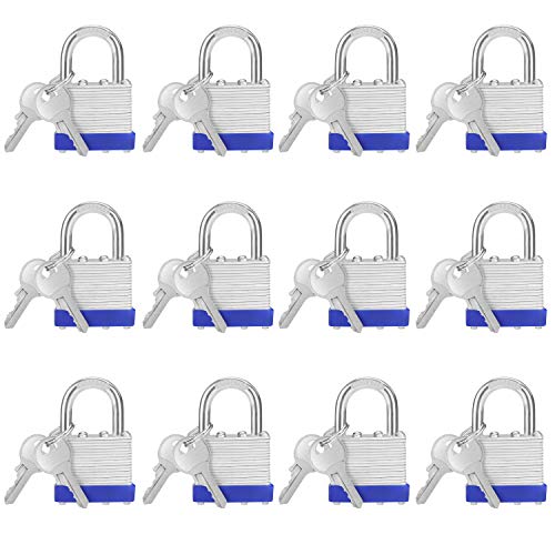 Belle Vous Heavy Duty Padlocks with Keys Outdoor (12 Pack with 2 Keys Each) - 6mm Shackle - Weatherproof Waterproof Rust Proof - Indoor/Outdoor Locks for Storage Shed & Locker