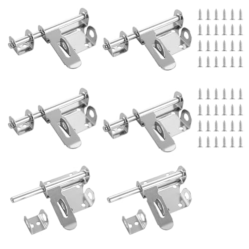 LOPYXBR 6Pcs Slide Gate Latch Bolt Lock for Gate 4 Inch, Silver Slide Lock for Door, Stainless Steel Gates Latch Bolt Door Lock with Screws for Wooden Gates, Outdoor Garden Shed Locks(4 Inch)