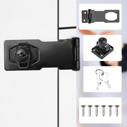 4 Inch Hasp and Staple with Padlock, ADERTOS Keyed Hasp Lock Heavy Duty Shed Lock Door Locks Hasps Twist Knob Keyed Locking Hasps Safety Door Clasp Gate Locks with Key for Cabinets Cupboard Gate