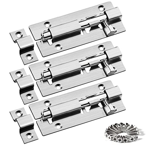 Stainless Steel Heavy Duty 3'' Gate Bolt Locks - 3Pcs Slide Latch Barrel Bolt for Bathroom Shed Door Yard Garage Gates (Silver)